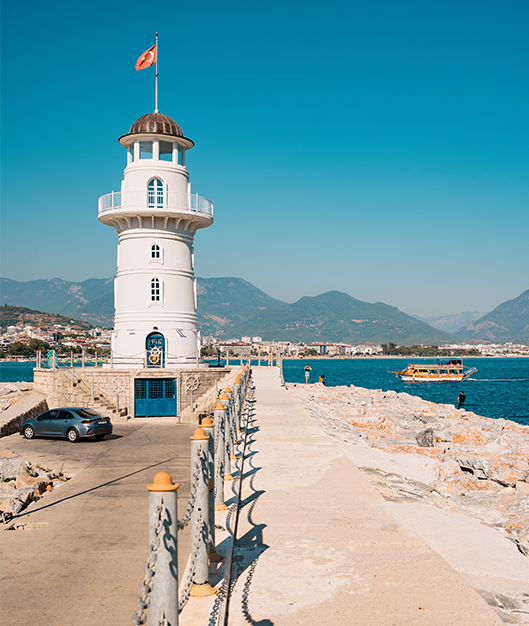 Этот маяк расположен в турецком городе Аланья, который находится в провинции Анталья.
